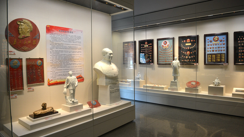 本次展覽展出規(guī)格不一、材質(zhì)不同的毛主席像章1500多枚,主題涵蓋井岡山革命根據(jù)地、長征、延安紅色政權(quán)、開國大典、抗美援朝以及“為人民服務(wù)”、毛澤東詩詞、中蘇友好等,并展出德化白瓷毛主席雕像、毛主席掛像、毛主席絲織畫像等藏品。