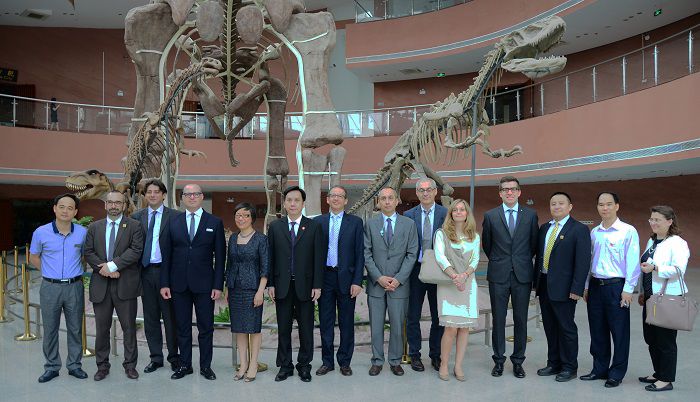 2015年5月14日上午,意大利艾米利亞-羅馬涅大區(qū)主席斯坦法諾·波納奇尼一行15人到我館參觀了恐龍文化和客家文化展廳。同時(shí)參觀的還有與我市剛剛結(jié)為友好城市的意大利費(fèi)拉拉市副市長(zhǎng)馬西莫.麥伊斯托。據(jù)悉,我市是廣東省首個(gè)與意大利簽署友城協(xié)議的城市。