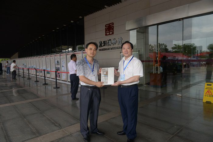 杜衍禮館長與惠州市博物館館長羅國雄交換紀(jì)念品