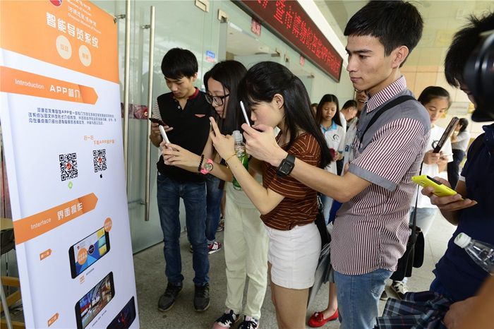 觀眾在下載APP系統(tǒng)以便進行館內自助導覽