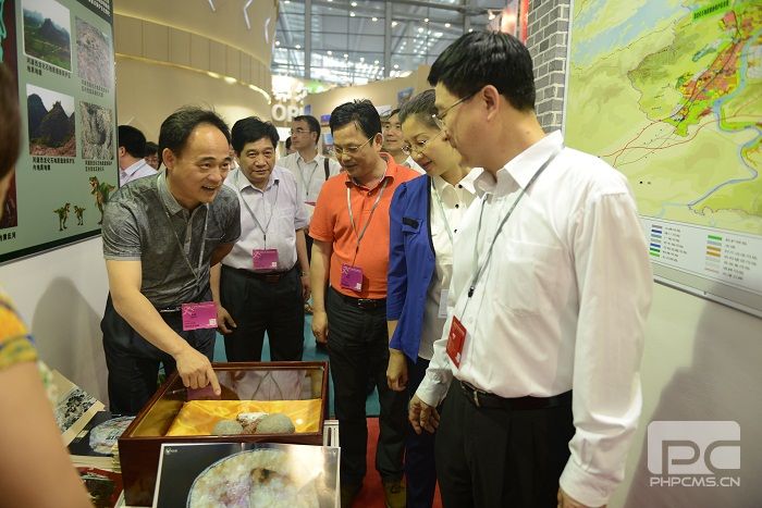 廣東省文化廳廳長方建宏在市政府副市長朱蔚蔚的陪同下到博物館展位參觀