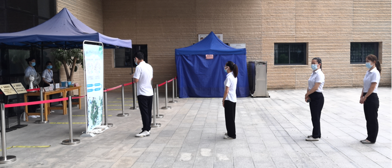當(dāng)天上午的演練共分兩個環(huán)節(jié):第一環(huán)節(jié)模擬正常對外開放的流程;第二環(huán)節(jié)模擬出現(xiàn)疑似病例的應(yīng)急處置流程。在各環(huán)節(jié)中,參加人員嚴(yán)格按照崗位職責(zé)、防控要點、注意事項、處置流程等要素進(jìn)行演練,并針對演練中出現(xiàn)的問題進(jìn)行了現(xiàn)場整改。